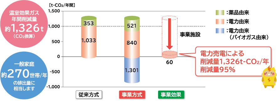 事業者提案となるバイオガス利活用の方法は、固定価格買取制度(FIT)を利用したバイオガス発電による売電で、事業期間全体で約22.8憶円の収入を予定しています。このうち17.6億円を事業費に充当することで、費用削減を行っています。